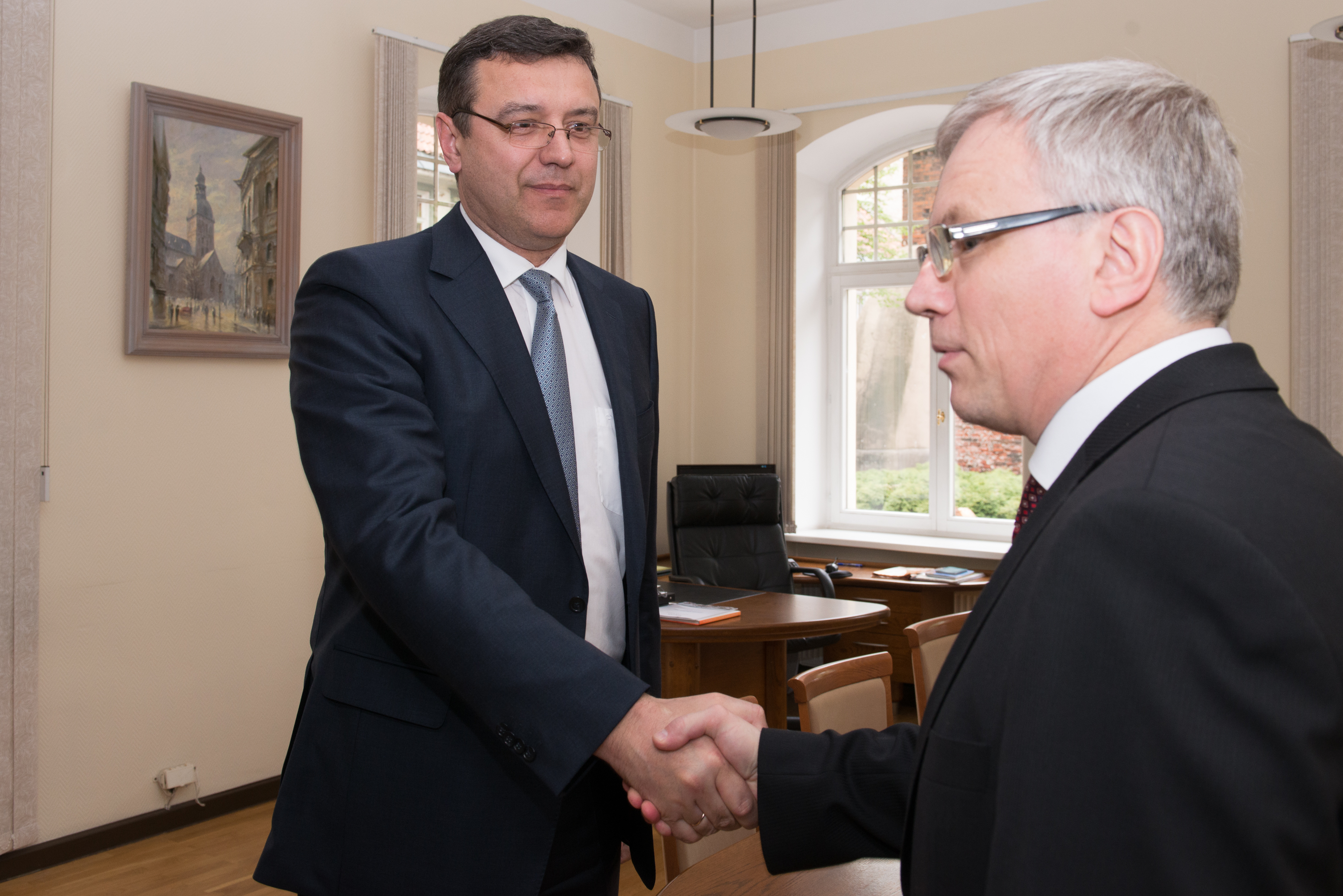 2014.gada 9.maijs. Saeimas Budžeta un finanšu (nodokļu) komisijas priekšsēdētājs Jānis Reirs tiekas ar Lietuvas Republikas finanšu ministru Rimantu Šadžu (Rimantas Šadžius). Foto: Juris Vīgulis, Saeimas Kanceleja Izmantošanas noteikumi: saeima.lv/lv/autortiesibas